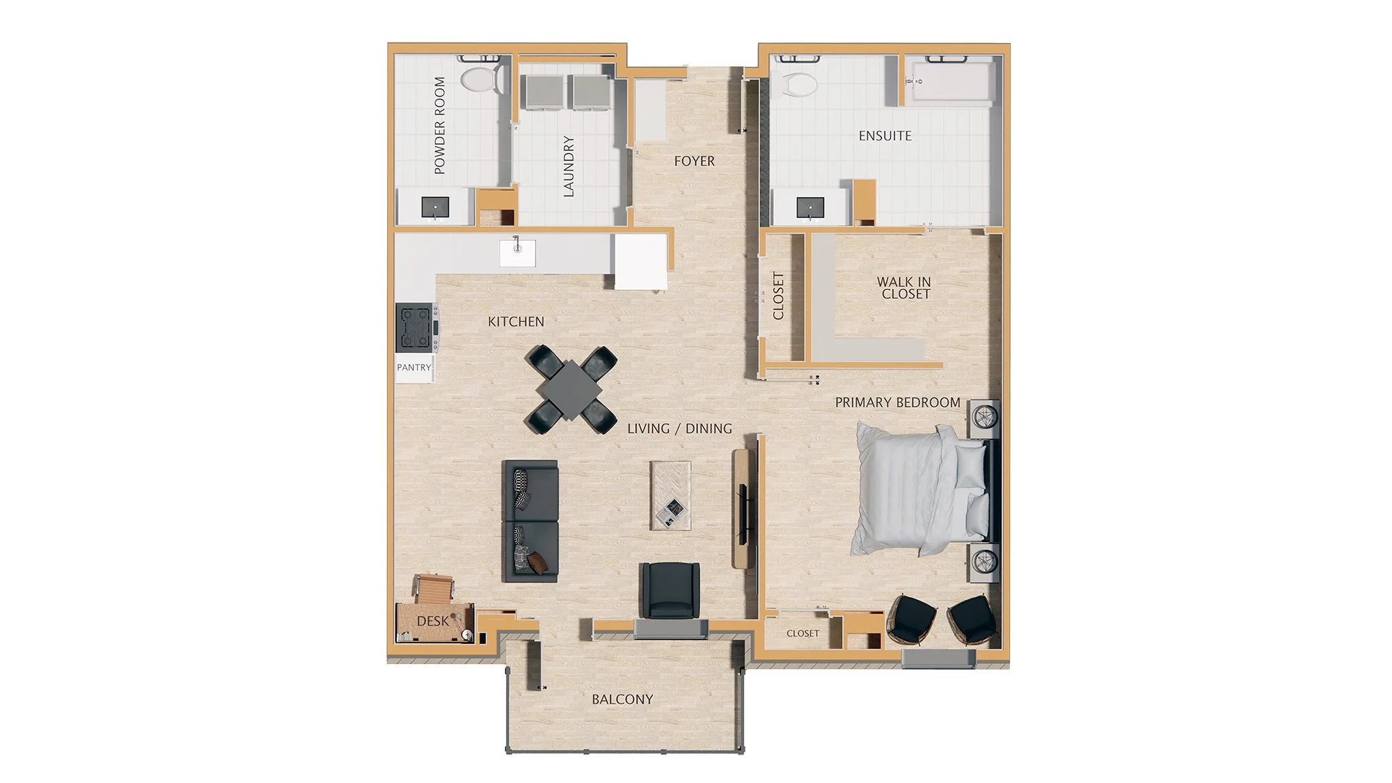 2 bedroom, 2 bathroom unit